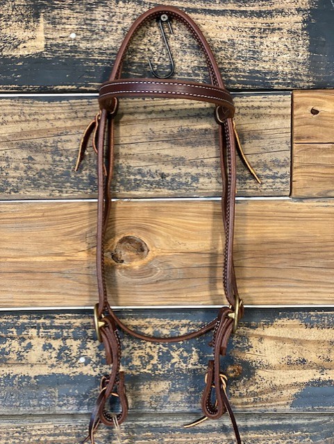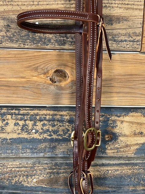 Double Buckle Browband. 3/4″ Doubled and stitched. Heavy Oil. Brass buckles. Horse Size.
