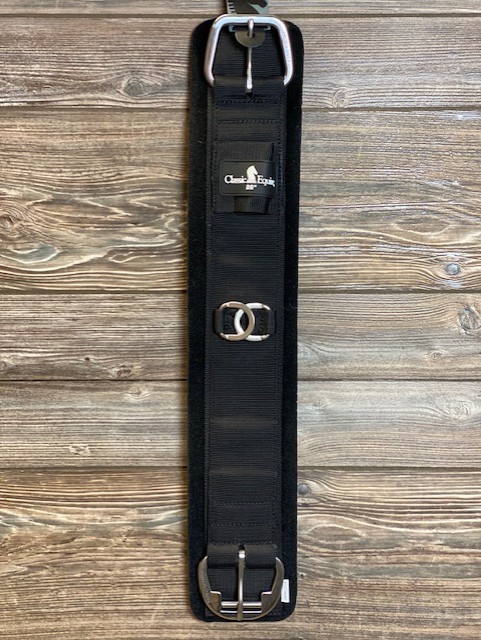 Detachable body is nylon for durability and strength. Removable cinch pad is made of a 9mm perforated neoprene, ensuring sufficient padding and comfort. Unique waffle patterned and shark skin textured neoprene acts like a second skin, gripping and moving with the horse. Recommended for use with leather latigos only, to allow the horse to expand naturally. Antibacterial and antifungal. Stainless steel hardware.