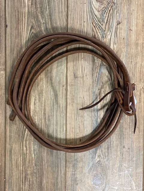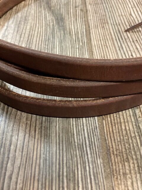 Dennis Moreland Single Ply Split Reins. 5/8″ wide. 7′ 5″ long. Thicker throughout than typical 5/8″ reins. XX