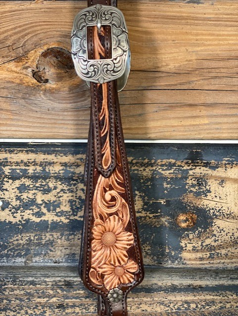 Dylan Randall Slide Ear Show Headstall. Two-toned Floral Tooling. Decatur, TX.