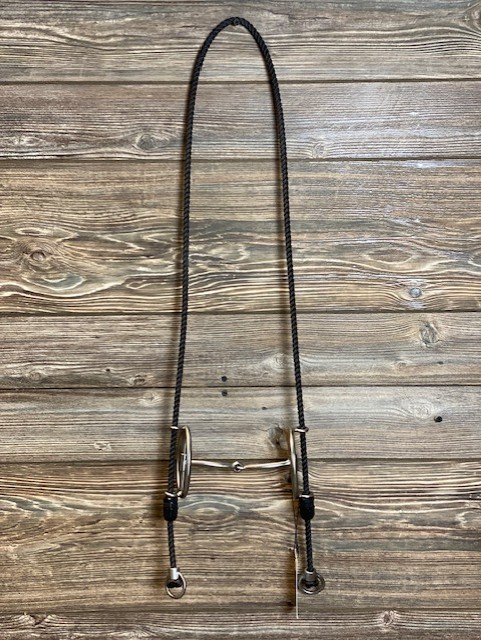 Smooth Snaffle Mouthpiece. Black Lariat Rope.