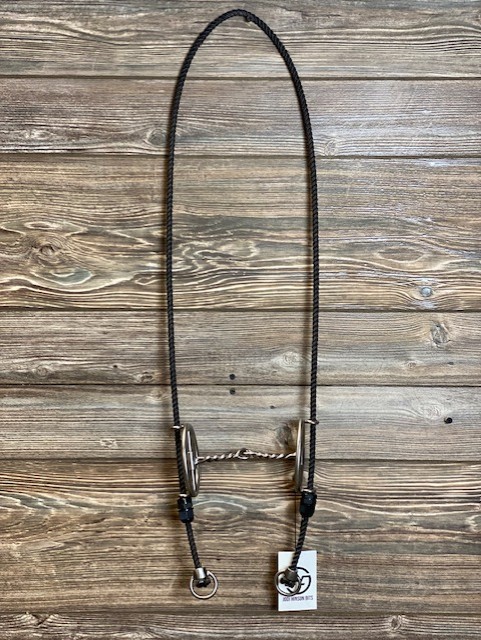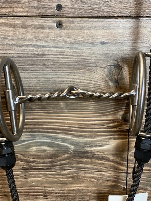 Twisted Wire Snaffle Mouthpiece. Black Lariat Rope.