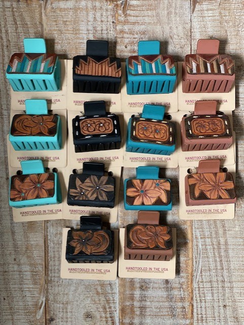 Rodeo Rose Tooled Leather Patch Hair Clip – Small