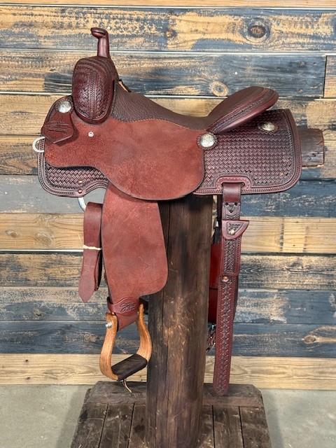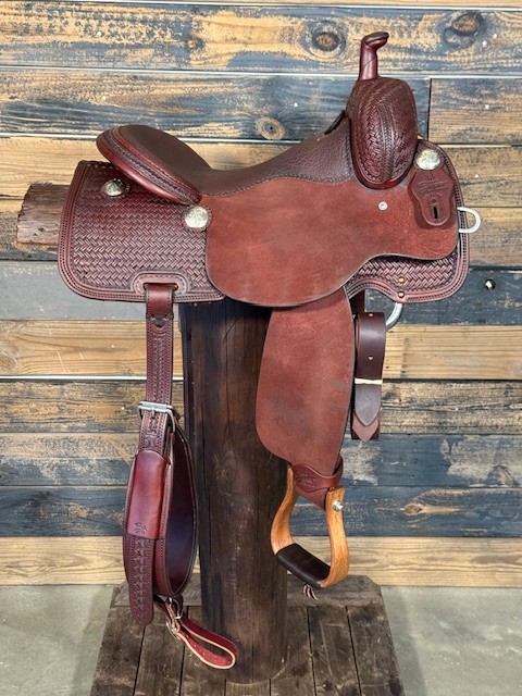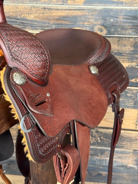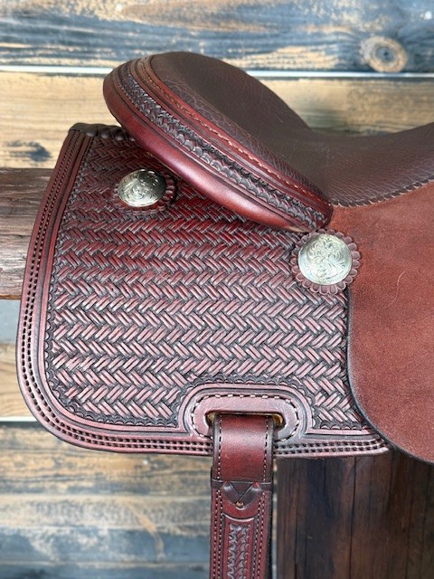 New Saddle House Custom Lady Cowhorse. 15.5″ seat.