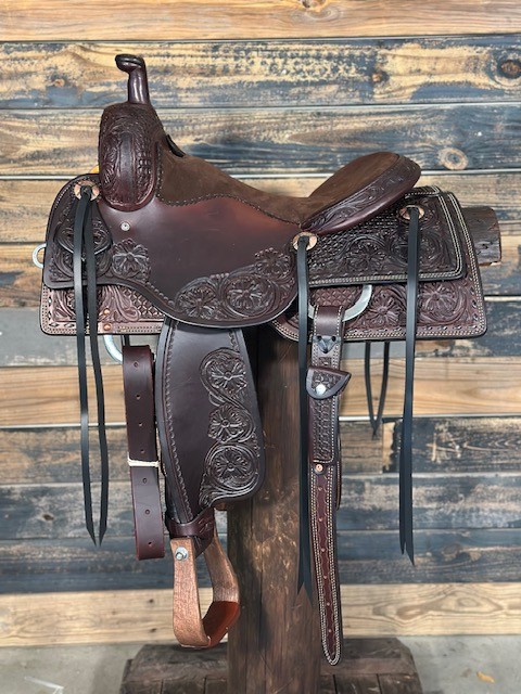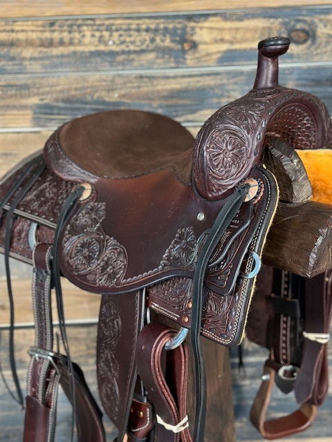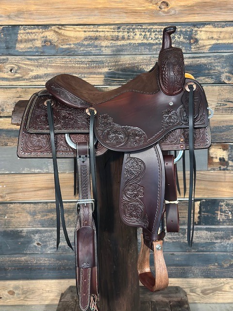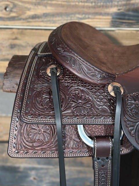 New Saddle House Custom Lady Cowhorse. 15.5″ seat.