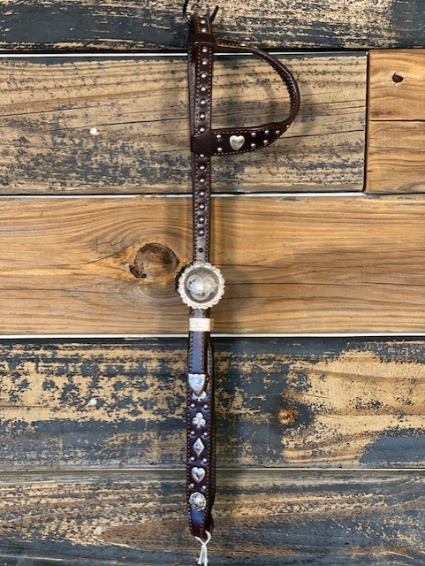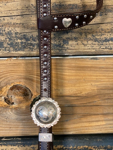 New Silver Show Headstall. Dark Oil. Slide Ear.
