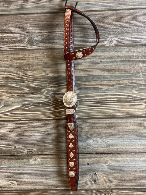 New Silver Show Headstall. Light Oil. Slide Ear.