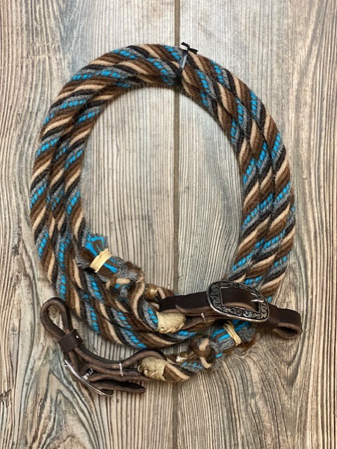 T3 Weavers 1/2″ Alpaca Loop Rein. 9.5′ Long. Leather Slobber Straps with Jeremiah Watt Buckles.