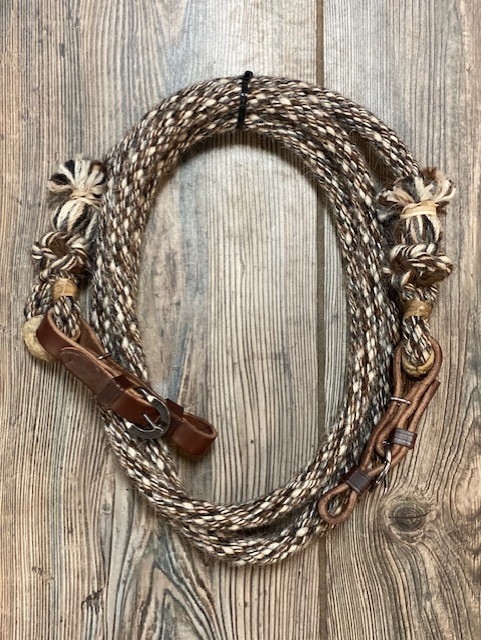 T3 Weavers 5/8″ Alpaca Loop Rein. 9.5′ Long. Leather Slobber Straps.