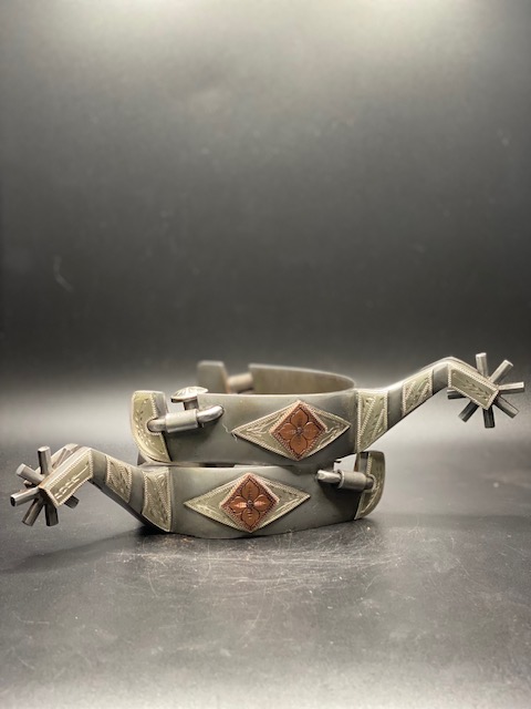 1.125″ Band. 2.25″ Shank. 8 point rowel.